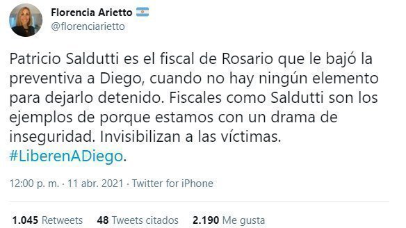 Tweet de Patricia Bullrich: https://twitter.com/PatoBullrich/status/1381318306339119108