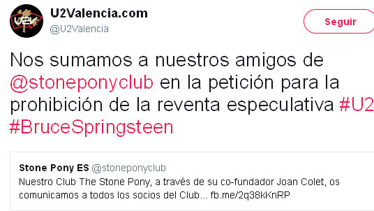 El club de U2Valencia se ha sumado a la petición para la prohibición de la reventa especulativa. Muchísimas gracias!