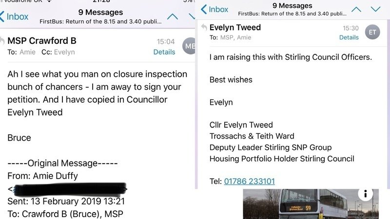 After contacting local MPs, I’ve managed to get the support from Brian Crawford, Evelyn Tweed and also the MP for Stirling, Stephen Kerr who are all in agreement about the lack of public service and who are contacting council officers. Will update when there is more information