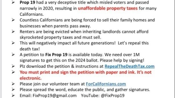 Petition updateFix California Proposition 19 (CA Property Death Tax) to save Proposition 13.What you do now will make a difference for generations to come.