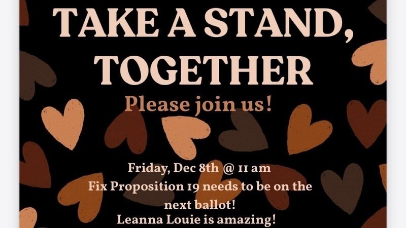 Petition updateFix California Proposition 19 (CA Property Death Tax) to save Proposition 13.Fix Proposition 19 Event WHEN Friday, December 8, 2023 11:00 AM PT Add to Calendar WHERE SF