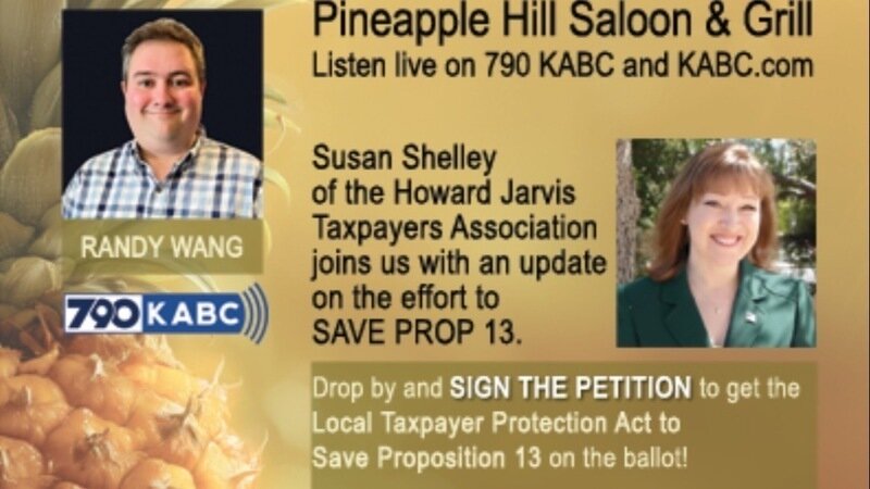 If you're in Southern California, join Vice President of Communications Susan Shelley in person on Friday (September 19) for a live remote broadcast of the John Phillips Show at Pineapple Hill in Sherman Oaks. Drop by and sign the petition to Save Prop. 13, or listen live on 790 KABC, 810 KSFO or on your computer or mobile device at KABC.com and KSFO.com.