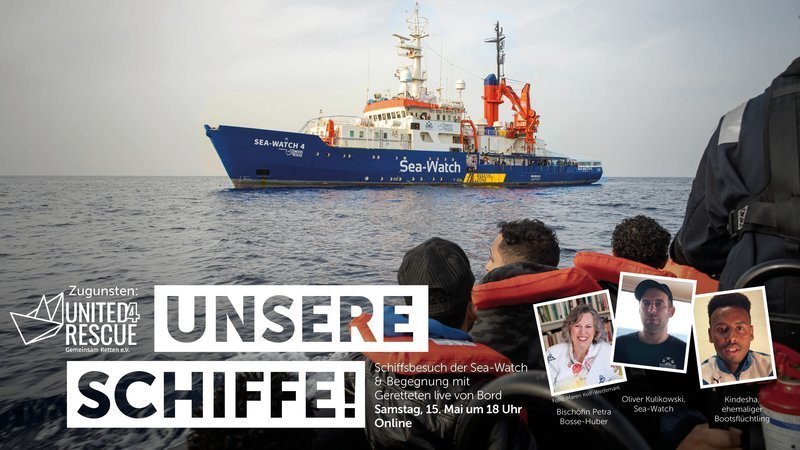 Es ist wieder Kirchentag! Durch die Initiative beim letzten Kirchentag retten schon zwei Bündnis-Schiffe auf dem Mittelmeer. Die Sea-Watch 4 hat gerade erst 455 Menschen gerettet. Anlässlich des Ökumenischen Kirchentages schalten wir per Webinar live direkt auf die Sea-Watch 4 und sprechen mit den Seenotretter*innen und mit Kindesha, der aus Seenot gerettet wurde. Seid live hier dabei!