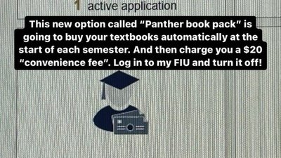 We are asking for this option to be disabled by default and an official email from FIU should explain how it works and how students might be able to benefit from it. As it is currently implemented it is a scam from FIU towards his students and this is unacceptable.