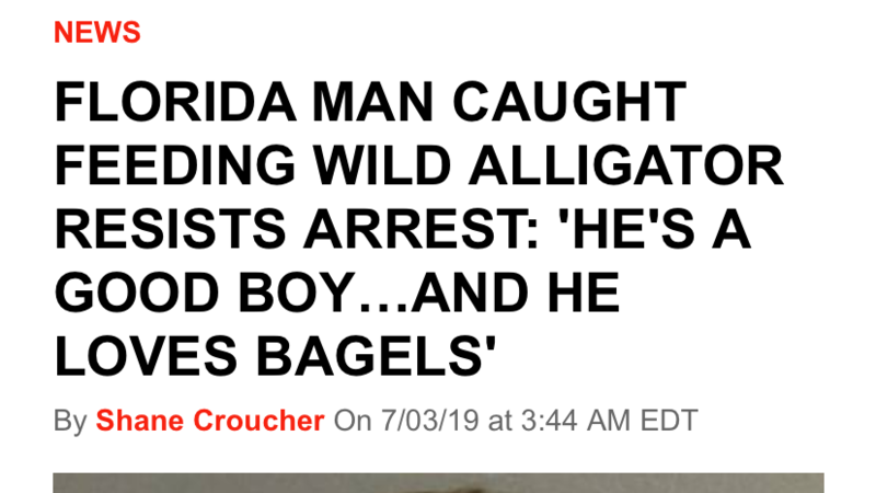 Free the Florida Man charged for feeding the wild alligator bagels!!