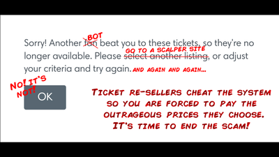 Now, fans looking for tickets are outplayed by tech savvy middlemen and an army of bots that bombard the ticketing website the moment they go on sale. "Sold out" events are now artificially created by greedy re-sellers who gobble up as many tickets as possible and then list them for sale at a 200-500% markup within seconds. All of this predatory traffic slows the ticket website to a crawl and decreases your chance of finding tickets even further.