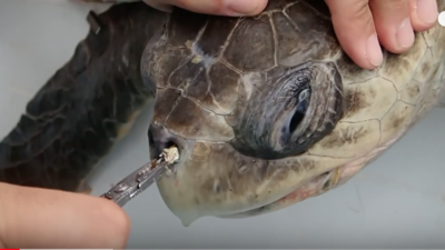 (Photo is screen-shotted from "Sea Turtle with Straw up its Nostril - "NO" TO PLASTIC STRAWS" on Youtube. )
