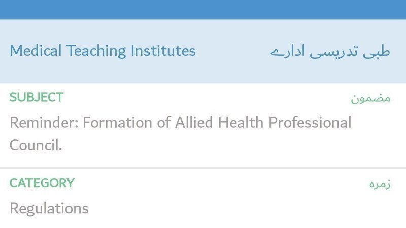 Select Category "Health", Select "Medical Teaching Institutes", Category "Regulations""