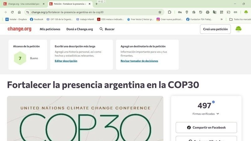 Apoya nuestra causa para que juntos logremos que Argentina tenga una voz firme, informada y decisiva en la COP30. Tu participación es clave. Firma esta petición para exigir una representación argentina que refleje realmente nuestras preocupaciones y nuestras capacidades. ¡Súmate para hacer la diferencia!