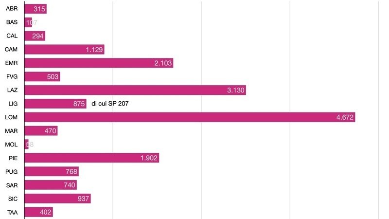 questa è la distribuzione regionale del numero assoluto di firme, escluso estero, da considerare sul territorio italiano anche 606 firme di provenienza sconosciuta