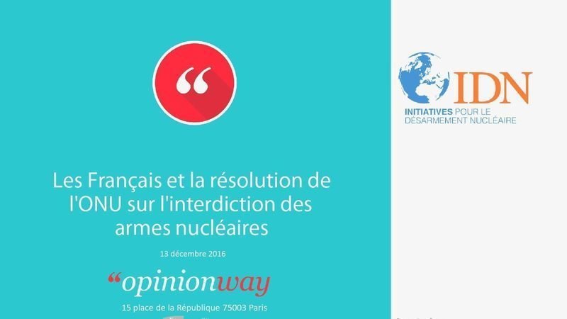 • pour 68 %des Français, la France doit réviser sa position à propos de l’ouverture de négociations d’interdiction de l’arme nucléaire, avec un élan notable de la majorité des Français (51%) en faveur d’un vote pour la résolution d’interdiction;
