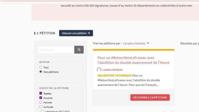 Je vous ai mis copie écran de la pétition telle qu'elle apparait. Il y a la mention "Validation technique" et je suis seule à pouvoir y accéder pour le moment.