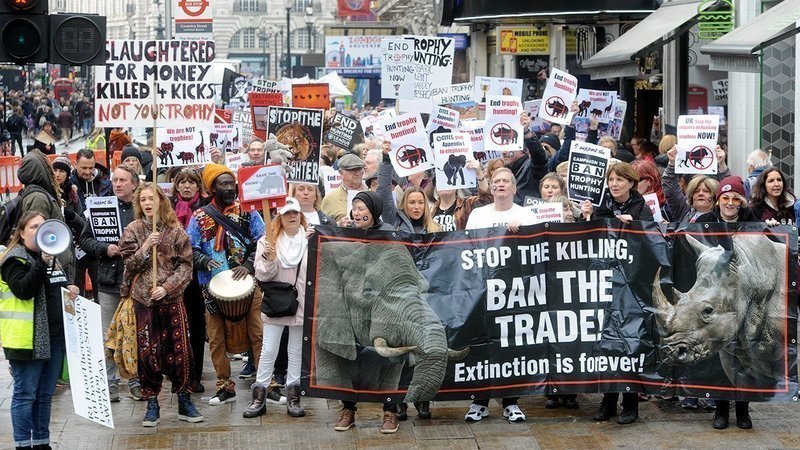 zehntausende Menschen demonstrieren weltweit für die bedrohten Wildtiere. Ein Schwerpunkt des Global March for Elephants and Rhinos, der dieses Jahr in 83 Städten auf fünf Kontinenten abgehalten wird, ist die Beendigung der Trophäenjagd. Annähernd tausend Menschen zogen am vergangenen Wochenende durch die Londoner Innenstadt, um in Downing Street No. 10 der britischen Premierministerin Theresa May einen Brief zu übergeben, in dem die Regierung aufgefordert wird, keine Importe von Jagdtrophäen mehr zuzulassen (actionforelephantsuk.org/letter-to-theresa-may-april-2019/).