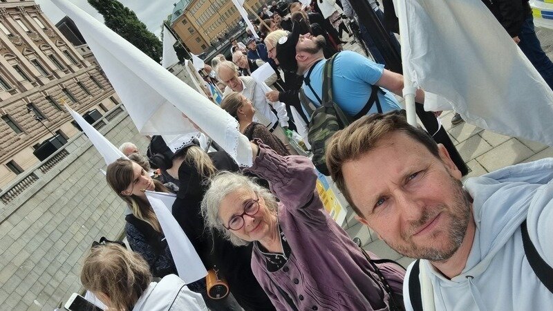 På tisdagen den 10 september 2024 samlades ett hundratal personer utanför riksdagen i samband med riksdagens öppnande för att manifestera under Vita Flaggans Dag. Med vita flaggor i handen uttryckte vi vår övertygelse om att Sverige bör verka för fred, istället för att bidra med vapen som förlänger det förödande kriget i Ukraina.