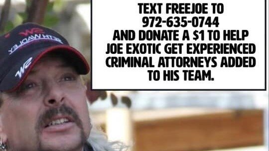 Joe Exotic must add experienced criminal attorneys to his team, or he will never make it out of prison alive. All he needs is 30,000 people to text and give $1. With your help, this could be accomplished within a matter of hours and give him a better chance for freedom.