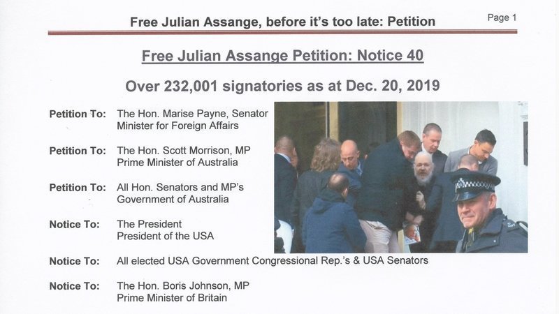 Julian Assange is an Australian citizen and journalist who is currently a political prisoner in London. He is facing extradition to the USA to face 175 years imprisonment and possible execution for publishing news material that was in the public interest. The information contained in his publications were not sourced by him, but rather were delivered to him by whistleblowers. Whistleblower sourced information is the usual occupational practice of an investigative journalist in a functioning democracy. This case highlights clear human rights abuses of Julian Assange, serious perversions of justice and a direct attack on the very fabric of democracy across western democracies.