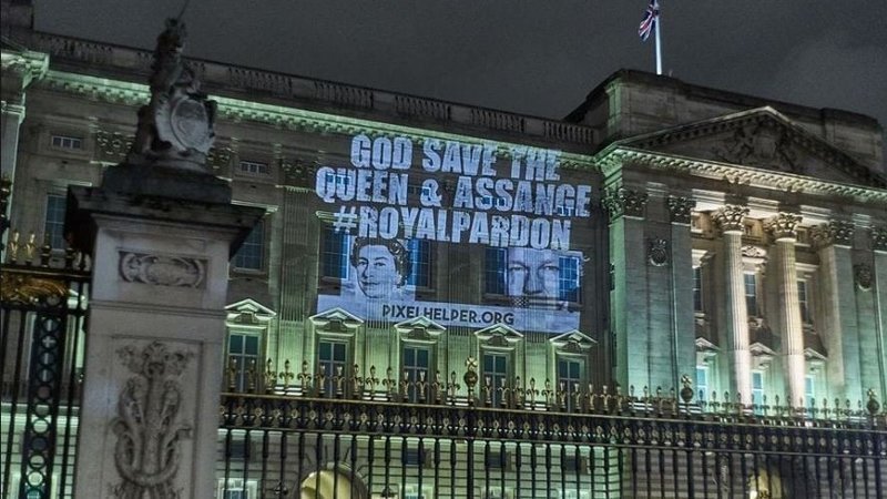 The awesome team at Pixelhelper.org followup our preparation and delivery of a formal application for a Royal Prerogative Power of Mercy (Royal Pardon) from Her Majesty Queen Elizabeth II as Assange is being tortured in Belmarsh HMP (Her Majesty's Prison). The projected our request onto Buckingham Palace. For a great PR effect.Thankyou to the team at Pixelhelper.org.