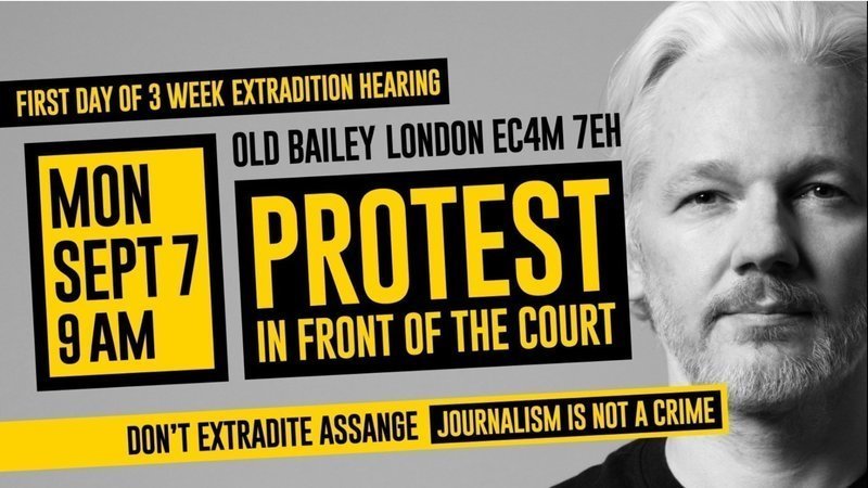 Sign to STOP the USA Extradition.FREE ASSANGE PROTEST in front of the court 9am, Sept. 7, Old Bailey Court London EC4M 7EH