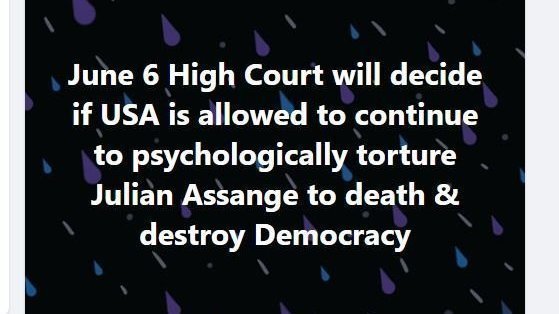 June 6 the British High Court will decide if it will allow the USA Government to continue to psychologically torture Julian Assange to death & destroy Democracy.