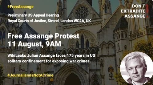 Planned demonstration protesting the continued detention of Julian Assange at Preliminary High Court hearing - 11 August 09.00 BST Royal Courts of Justice, London
