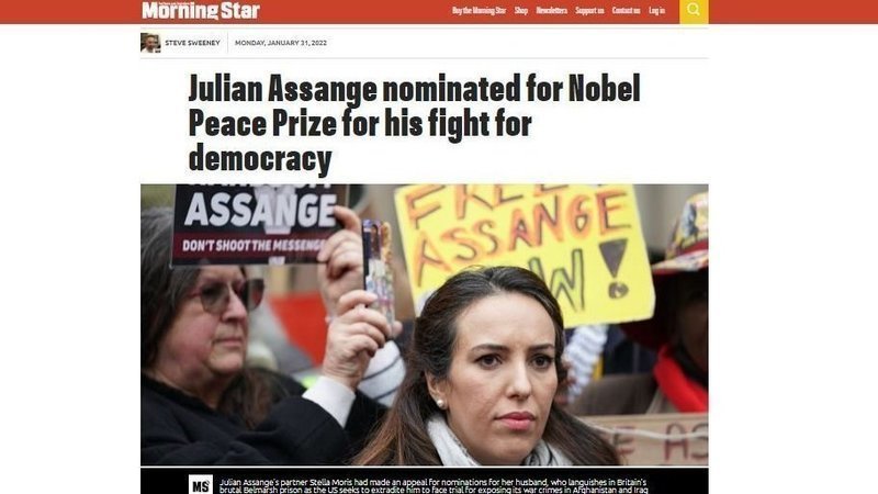 Hi All, I hope you are well. Thankyou to Steve Sweeney (Morning Star) for this article link "Julian Assange has been nominated for the Nobel Peace Prize for his fight for human rights, democracy and press freedom, it was confirmed today.