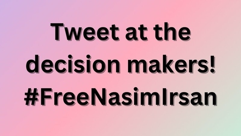Please tweet this petition at the following accounts : @GovAbbott, @GregAbbott_TX, and @membergutierrez using the hashtag #FreeNasimIrsan! Even if it may take a lot of signatures to get any attention from the decision makers , posting this on their social media will also get the attention of people in Texas . Make sure to also comment on some of the decision maker’s tweets with the petition link and hashtag as well ! We’re making great progress so far , but we really need to keep building momentum .