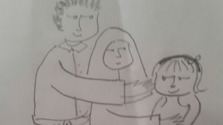 At the last family visit. Nazanin was allowed to draw Gabriella the picture above – of her together with her mummy and daddy. Her message to Gabriella and me.