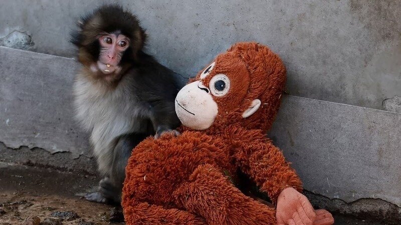 Keeping a baby primate alone for public attention causes long term psychological harm. No stuffed animal replaces a real family.