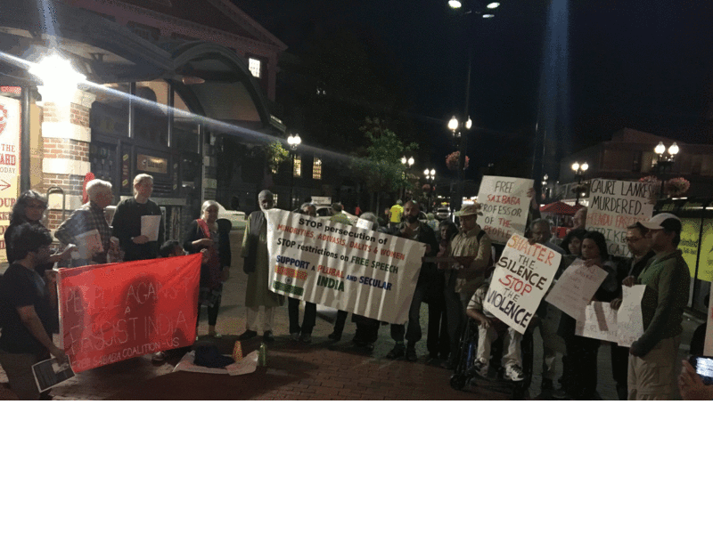 Today the Free Saibaba Coalition-US hosted a joint protest and vigil with the Alliance for a Secular and Democratic South Asia, Coalition for a Democratic India (CDI), and the South Asia Center. The event was primarily focused on the recent murder of Gauri Lankesh but also was in opposition to the suppression of dissent in India more broadly. Progressive forces in the greater Boston area came together to stand with the people’s struggles in India in opposition to ongoing attacks by the ruling class and the various Hindu fascist forces they arm and sponsor.