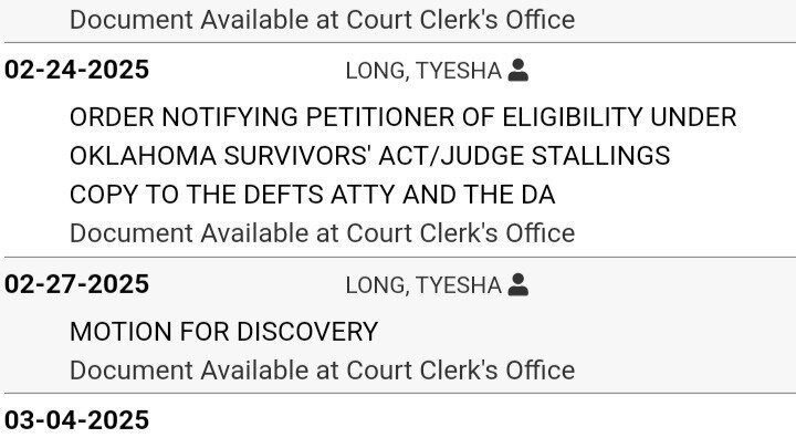On 2/11/25, Tyesha's attorney's asked for resentencing under the Oklahoma Survivors Act. On 2/24/25, only 13 days later, her request was approved! As of 3/4/25, her full application was submitted and we are now awaiting a court date. Once I get that information I will post an update here and on social media so that you all can come out and support her. Again, we thank you for your continued support and prayers.