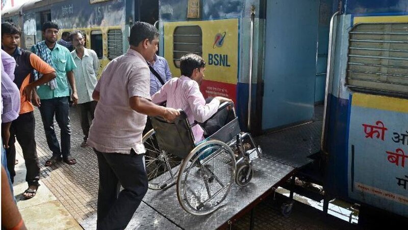 According to the People with disability act, there should be ramps available in public places for wheelchair access. Many railway stations do not have ramps. There are many rural railway stations, where there are no wheelchairs. In cities the Wheelchairs are limited, Example there are nine wheelchairs available in Secunderabad railway station for the number of people travelling and being very busy.