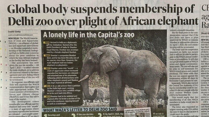 After receiving numerous complaints regarding Shankar’s health, a WAZA team visited the Delhi zoo on March 18 and visited the elephant’s enclosure. Raising concerns over the zoo authorities restraining the animal with chains, the association then wrote to the zoo in May, seeking appropriate action within 15 days so that a review could be conducted.