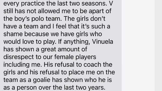 I recently learned of a current athletes story of discrimination by Coach Vinuela. See above text message sharing their experience. This is a current FHS student so we are keeping their name private, they did give permission to share their experience. Not only is his discrimination illegal it's devastating to learn about. His patterns of discrimination span throughout his career. His poor behavior has been allowed to continue because FUSD leadership fails to hold him accountable.