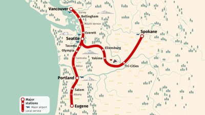 The Washington State Legislature is considering a two-year transportation funding bill which could initiate a detailed study of high-speed ground rail in the Cascadia megaregion.