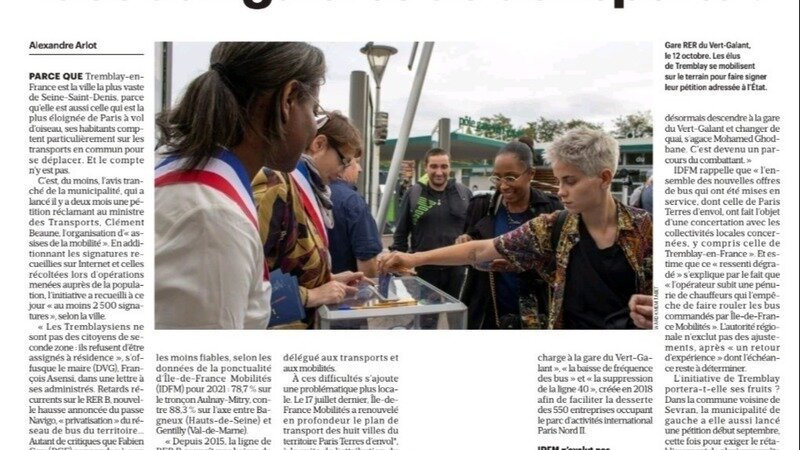 Petition updateGalère du RER B, hausse des tarifs, privatisation des bus, ZFE... Ça suffit !Dans le Parisien du 3 novembre 2023
