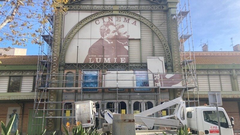 Par un tour de passe-passe, le cinéma Lumière vient de disparaître de notre paysage : les tympans des 2 façades où trônaient les Frères Lumière ont été démontés, un « nettoyage » serait prévu …