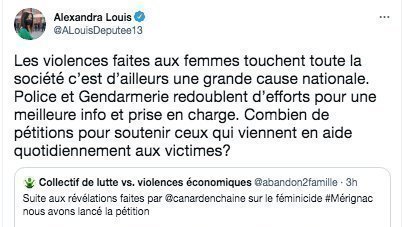 Manipulation honteuse de la députée La République En Marche, Alexandra Louis qui oppose "soutien aux FdO" à "soutien aux femmes (et enfants) victimes de certains policiers et gendarmes".