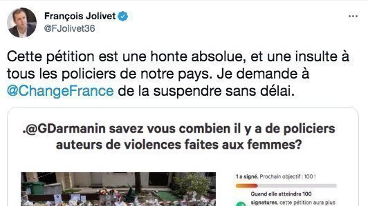 Pour François Jolivet, Député de l'Indre (La République En Marche) demander un état de lieux des violences masculines commises par des FdO sur leurs (ex)femmes, plaignantes ou collègues serait "une honte absolu".