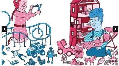 This has led to many stereotypes. Some stereotypes include- pink is girls' color, blue is boys' girls don't play with cars, trucks, toy guns, they have to play with dolls because that's what they have to do - take care of children, be delicate.