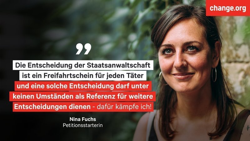 Vor diesem Hintergrund ist die Entscheidung der Staatsanwaltschaft, die einen Freifahrtschein für jeden Täter darstellt, absolut fatal. Zumal da eine solche Entscheidung immer auch als Referenz für weitere Entscheidungen dient – insbesondere dann, wenn sie von zwei höheren Instanzen, wie der Generalstaatsanwaltschaft und dem Oberlandesgericht, in ihrer Richtigkeit bestätigt wurde. Die Vorstellung, dass in der Zukunft noch weiteren Frauen aufgrund meines Falles ein fairer Prozess verweigert wird, ist für mich unerträglich und deshalb habe ich mich dazu entschieden, ans Bundesverfassungsgericht zu gehen und weiterzukämpfen.