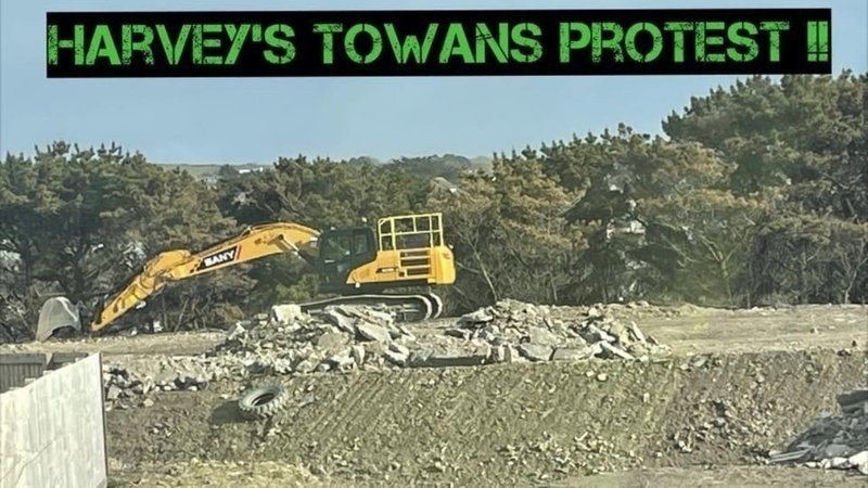 The local community have had enough of the developer and have organised a protest to show him we are angry Harveys Towans is being bulldozed without planning permission! This is right outside my door now, and has extended way beyond what was passed. The Towans have been desecrated and the whole topography changed, displacing all the wildlife with a total disregard for rules or the environment. It is heartbreaking that this has happened but by coming together now, we hope the enforcement officers at Cornwall Council will make sure the sand is replaced and any future planning permission here is refused. Hayle is a UNESCO port with incredible history… let’s protect what makes it so special. Come and join us or Share this post. Thank you