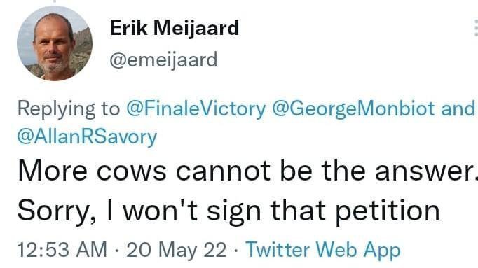 I had an exchange with the wonderful Erik Meeijaard, who has written many scathing pieces about the greenwashing of the Batang Toru Dam. He said there's no way cows can be the answer. Are you sure about that Erik? We have sixty years of evidence. The science is clear and readily available. What made this exchange particularly irritating was the fact that he had nothing but prejudice. He didn't cite a study or make his case. He basically said "I don't like cows, sorry I'm not going to man up and do what is right."