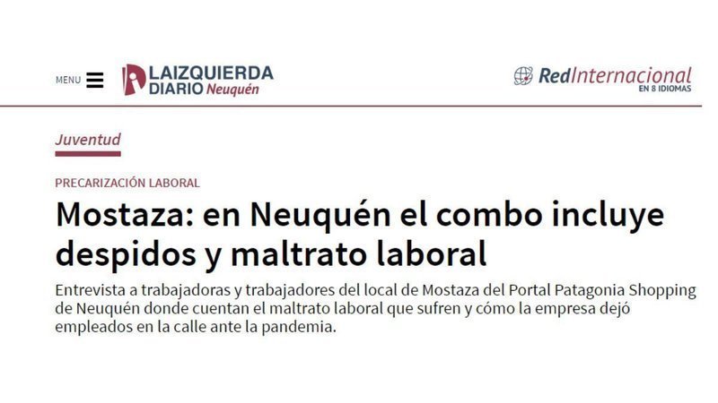 Así lo refleja una nota publicada en La Izquierda Diario en Abril de este año. En esta pieza, trabajadores de una franquicia de la compañía multinacional dan a conocer las terribles condiciones laborales en las que tienen que trabajar, cuando no son directamente despedidos, desconociendo cualquier responsabilidad laboral para con sus empleados y dando razones de coyuntura económica, por la pandemia de Covid-19.