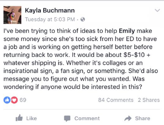 As this has been going on, Kayla (or Emily) decided to come up with yet another idea to suck in money from her followers as the money that comes in, does not get spent to as what it's promised it'll be spent on. It is taking advantage of those who feel sorry for her and those who unfortunately suffer with illnesses and feel like they can relate to Emily LeRae Smith.