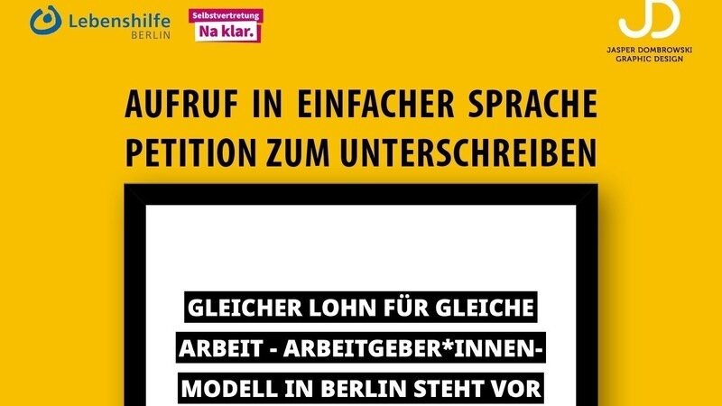 Petition updateGleicher Lohn für gleiche Arbeit - Arbeitgeber*innen-Modell in Berlin steht vor dem Aus!Petition in Einfacher Sprache