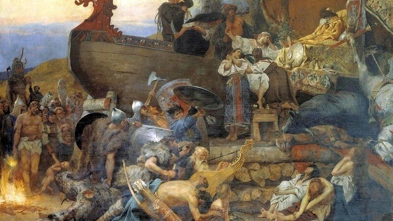 Illustration: Reactionary utopia--burial ceremony of a tribal chieftain in the Kyivan Rus ("cradle of the Russian nation"), painted by Henryk Siemiradzki (1883)