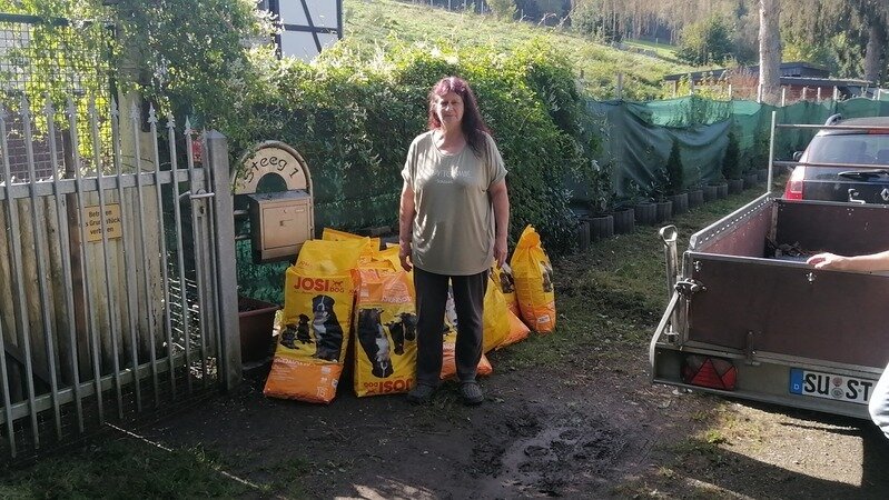 Durch ein Mitglied unseres Vereins kamen Futtersack Spenden zusammen und das nicht zu knapp. Danke an alle Spender! Wir haben am Samstag dort gefilmt. Leider ist wieder eine Anzeige wegen Lärmbelästigung bei Frau Merten eingegangen. Hier kann man schon fast von Behördenwillkür sprechen. Wir haben extra in 100 Meter gefilmt und dann direkt vor dem Hof des Anzeigestellers, einen Kilometer entfernt. Und dort hat man, außer dem Verkehr, kein Hundegebell gehört. Wir werden daher das Ordnungsamt und den Anzeigesteller um eine Stellungnahme bitten. Wer Frau Merten helfen will, kann dies unter der Kto.Nr.:
