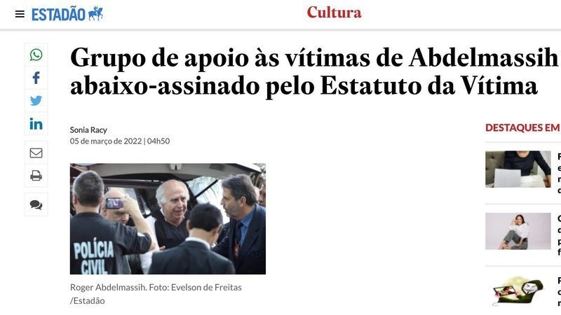 Aviso de atualizaçãoBasta de violência! Pela aprovação do Estatuto da Vítima - PL 3890/20!Saiu no Estadão! Grupo de apoio às vítimas de Abdelmassih faz petição pelo Estatuto da Vítima
