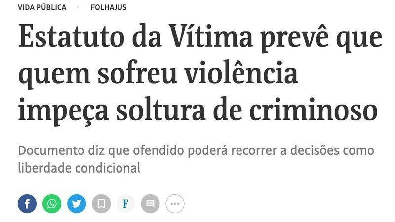 News alertBasta de violência! Pela aprovação do Estatuto da Vítima - PL 3890/20!Saiu na Folha de SP! Estatuto da Vítima prevê que quem sofreu violência impeça soltura de criminoso