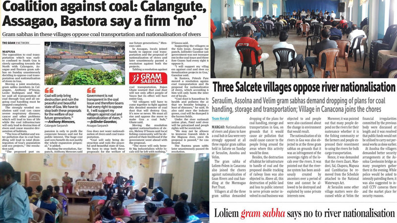 Recent Gram Sabhas held in different areas of Goa voice their opinion and pass resolutions asking to Stop the Coal Hub in Goa.